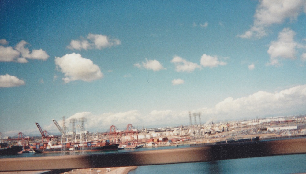 Over the years, the advent of the flood control channel has led to the land around the Los Angeles “River” to become so developed that there is very little ground without pavement. This has stopped the water from penetrating the soil and making its way eventually to the sea. Instead, the water forms in puddles around the lowest curbs, forcing the heaving city to slow. The city quiets when it rains. The already diminished movement on the freeways stutters even further, and the pools of water found on street corners take on a type of metallic sheen, catching the run-off oil from the congested streets. I know it is supposed to be ugly, that oily film, but it is only with prior knowledge that it gains its sinister hue. If one forgets, just for a moment, that it does not gain its sheen from the miscegenation of water and petroleum, it takes on a celestial quality, like the arm of a galaxy seen through the Hubble telescope. In actuality, the oily film is simply a little reminder of commodities traded in the Middle East or South America, refined somewhere else, and eventually sent to the end of the continent – Los Angeles.